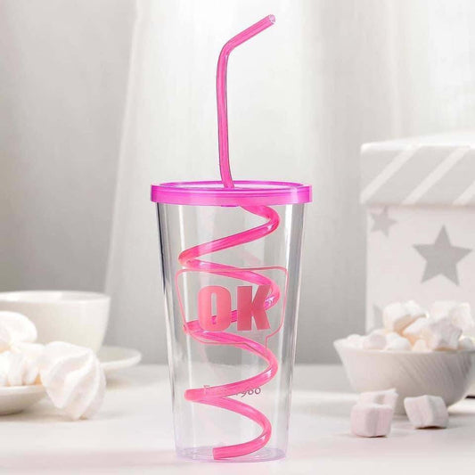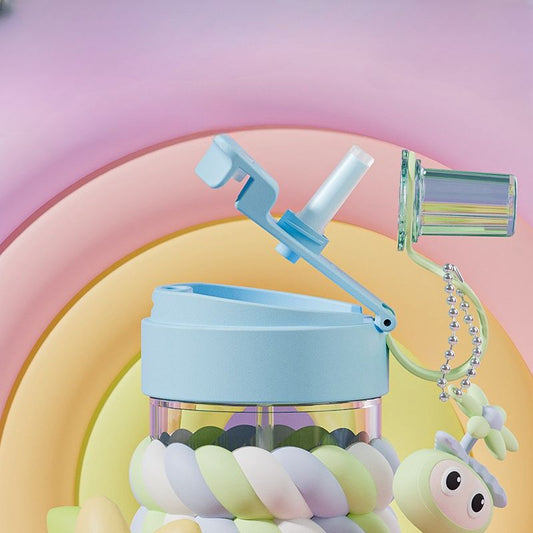 Cute straw water cup girls portable summer high-value big belly cup plastic cup outdoor portable children's water bottle (700ml)
