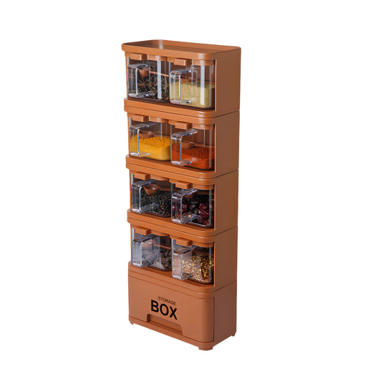 Storage Box Condiments & Spice Rack With 9 Spice Jars And Spoons