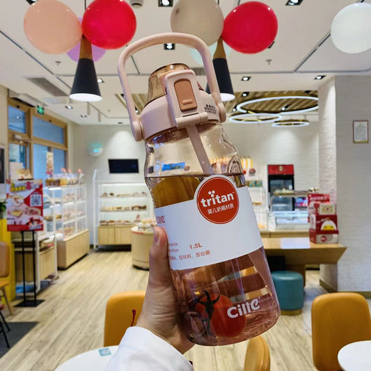 1300ml Plastic Bottle Cute Large Capacity Big Belly Cup with Straw and Tea Filter