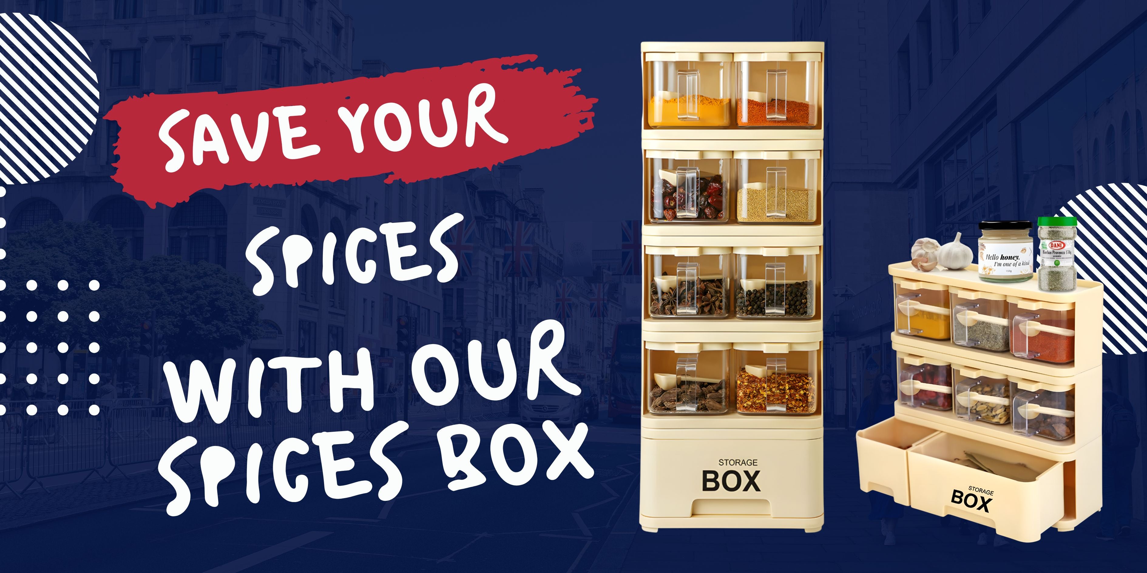 Storage Box Condiments & Spice Rack With 9 Spice Jars And Spoons