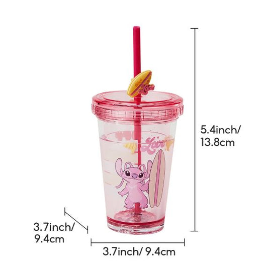 Disney Lilo And Stitch Series Plastic Cup Portable Cup,Portable Sports Water Bottle, Cute Cartoon Takeaway (320mL) (Angel)