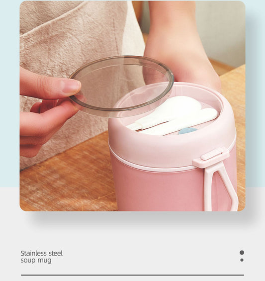 Kids School 304 stainless steel Soup Cub Lunch Box Travel Food Container (Pink Color)