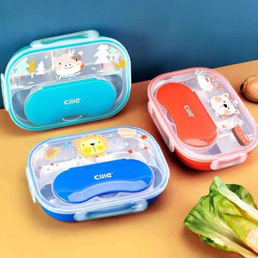 Stainless Steel 4-Compartment Hot and Cool | Includes Steel Spoon and Fork