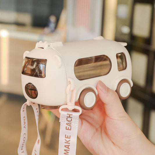 New style baby cool bus car children's water cup plastic cup creative straw toy school cup PC car shape water bottle