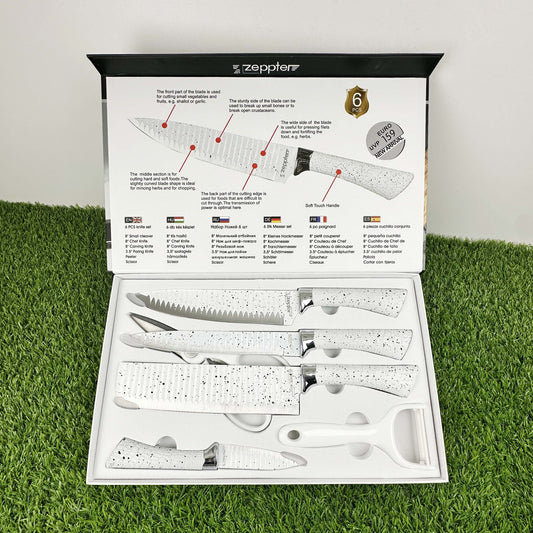 Zepter Best Quality white and Black 6 Pieces Knife Set- Stainless Steel-With Strong Non-Stick Coating -Unique Design