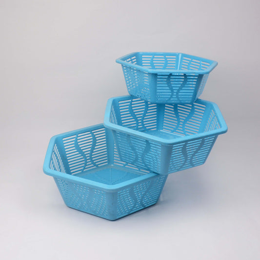3-Piece Knit Plastic Fruit Basket | Multipurpose Basket for Fruits & Vegetables