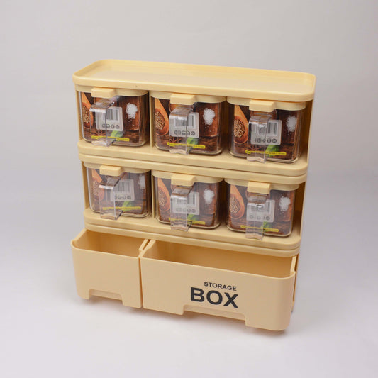 Storage Box Condiments & Spice Rack With 6 Spice Jars And Spoons