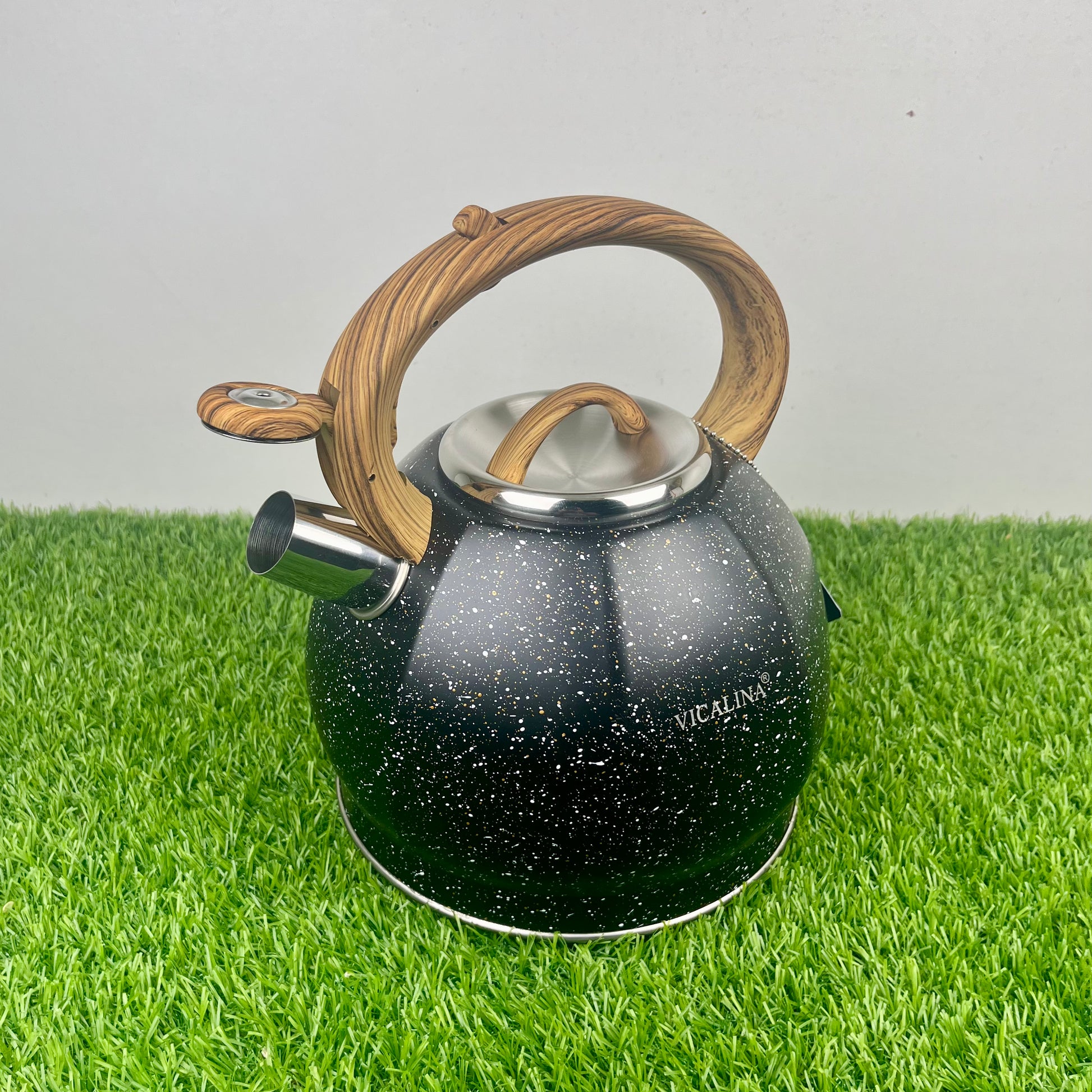 3.5L Stainless Steel with wooden handle Kettle with Unique Marble Coating Design