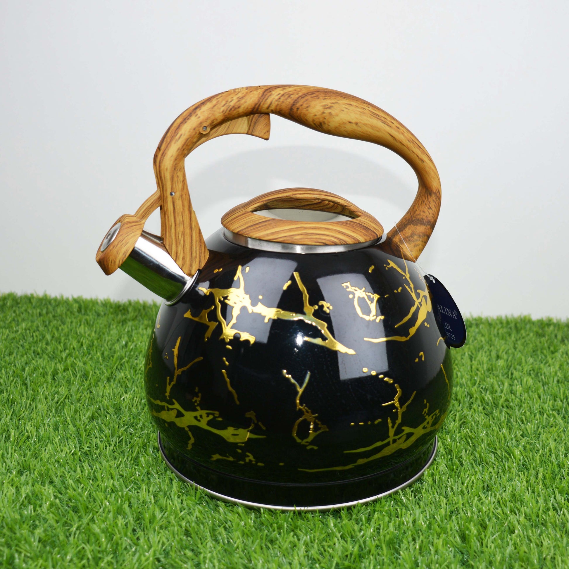 Colorful Painting Bollitore Whistling Kettles 3.0L Stove Top Single Bottom Whistling Kettle with Wooden Handle (Golden)