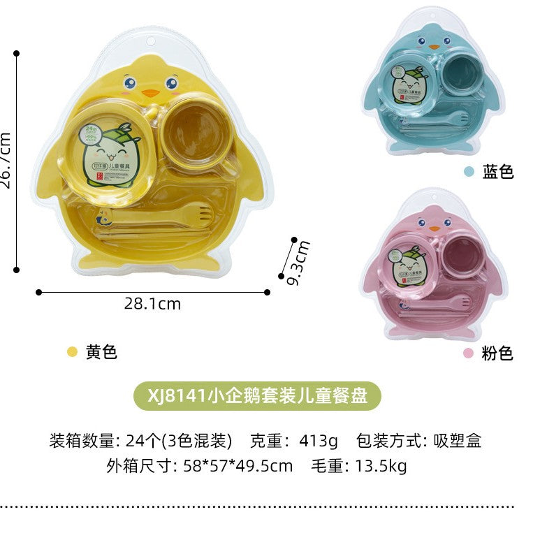 Cute cartoon BPA free wheat straw plastic children kids dinnerware set dinner tableware set