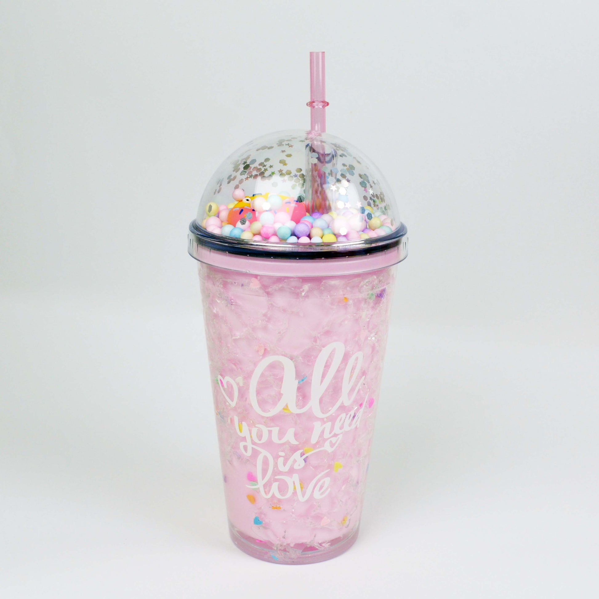 Seaygift 500ml Double Wall clear Ice Tumbler Cups Fruit Juice Summer Drinks Bottle Mouse Ear Plastic Water Bottle with Straw
